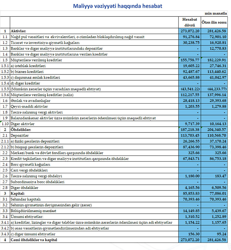 Azərbaycan bankından 8,7 milyon manat xalis qazanc - MALİYYƏ VƏZİYYƏTİNİ AÇIQLADI