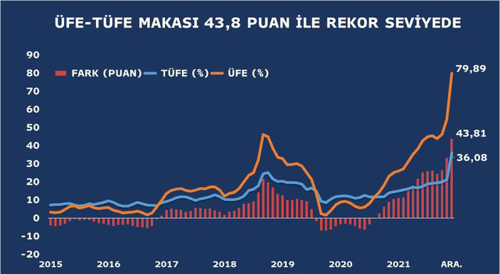 Türkiyə Statistika Təşkilatı (TÜİK) 2021-ci ilin dekabr ayı inflyasiya məlumatlarını açıqlayıb.