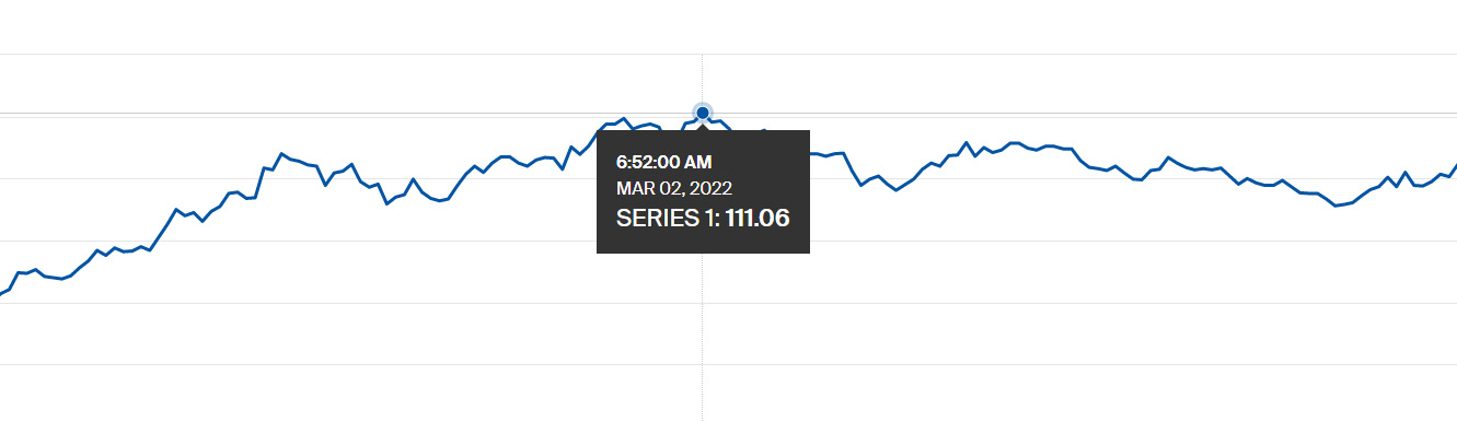 Rusiya-Ukrayna müharibəsinin təsirilə bahalaşan neft qiymətlərindəki "ralli" davam edir. Brent markalı neftin qiyməti 2014-cü ilin avqustundan bəri ilk dəfə olaraq 111 dolları keçib. Beynəlxalq Enerji Agentliyindən vəziyyətin ciddi olduğu barədə məlumat verilib.Rusiyanın Ukraynaya müdaxiləsi və sonra elan edilən sanksiyalar ilə əlaqədar olaraq Brent nefti 110 dolları, ABŞ xam nefti 108 dolları keçib. Brent nefti 12%-dən çox, ABŞ xam nefti isə 13%-dən çox bahalaşıb. Brent neftinin qiyməti 111,06 dolları da test edib.