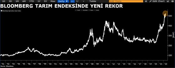 Marja.az xəbər verir ki, kənd təsərrüfatı əmtəələrndə qiymət hərəkətlərini izləyən Bloomberg Kənd Təsərrüfatı İndeksi rekord səviyyəyə yüksəlib. Pandemiyadan əvvəl 225 bənd olan Bloomberg Kənd Təsərrüfatı İndeksi 524 bəndi keçərək rekord qırıb.